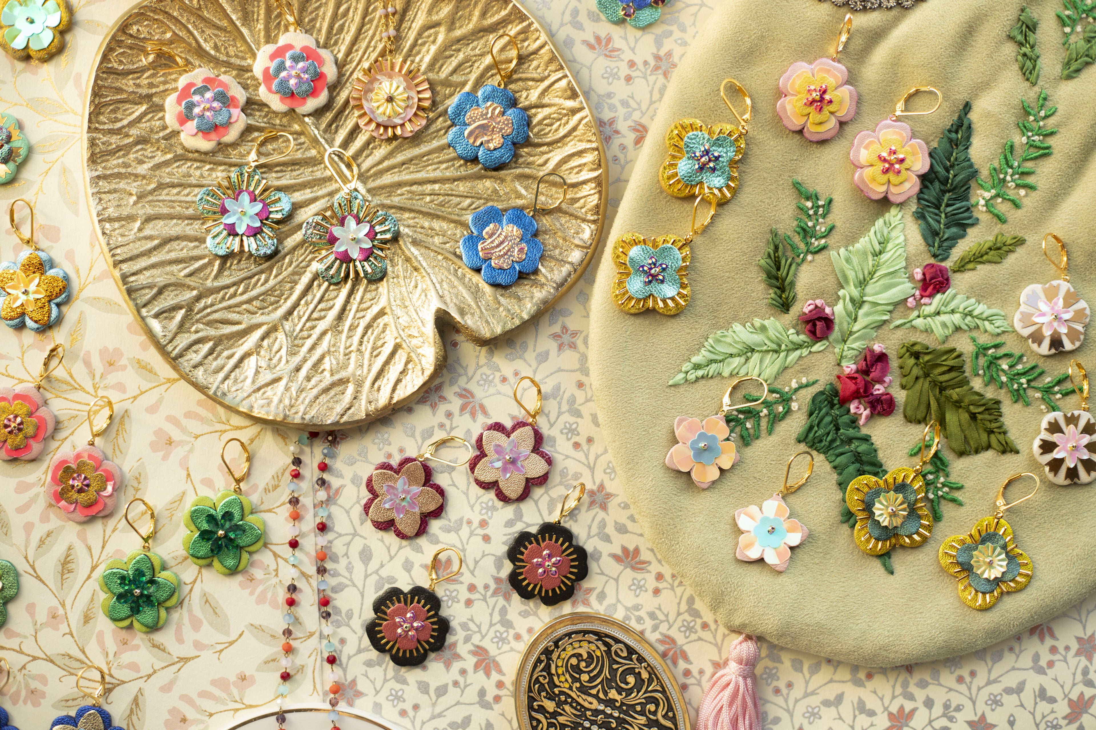 Mon atelier, niché au cœur de la Haute-Savoie, est l'écrin de cette démarche créative. C'est là que je chine les chutes de cuir, les apprêts et les perles qui deviendront vos futurs bijoux. Chaque pièce est pensée et façonnée à la main, avec le souci du détail et l'envie de vous transmettre un peu de cette passion qui m'anime. Mon inspiration est partout : dans la nature qui m'entoure, dans les couleurs vibrantes, dans les formes géométriques et organiques.