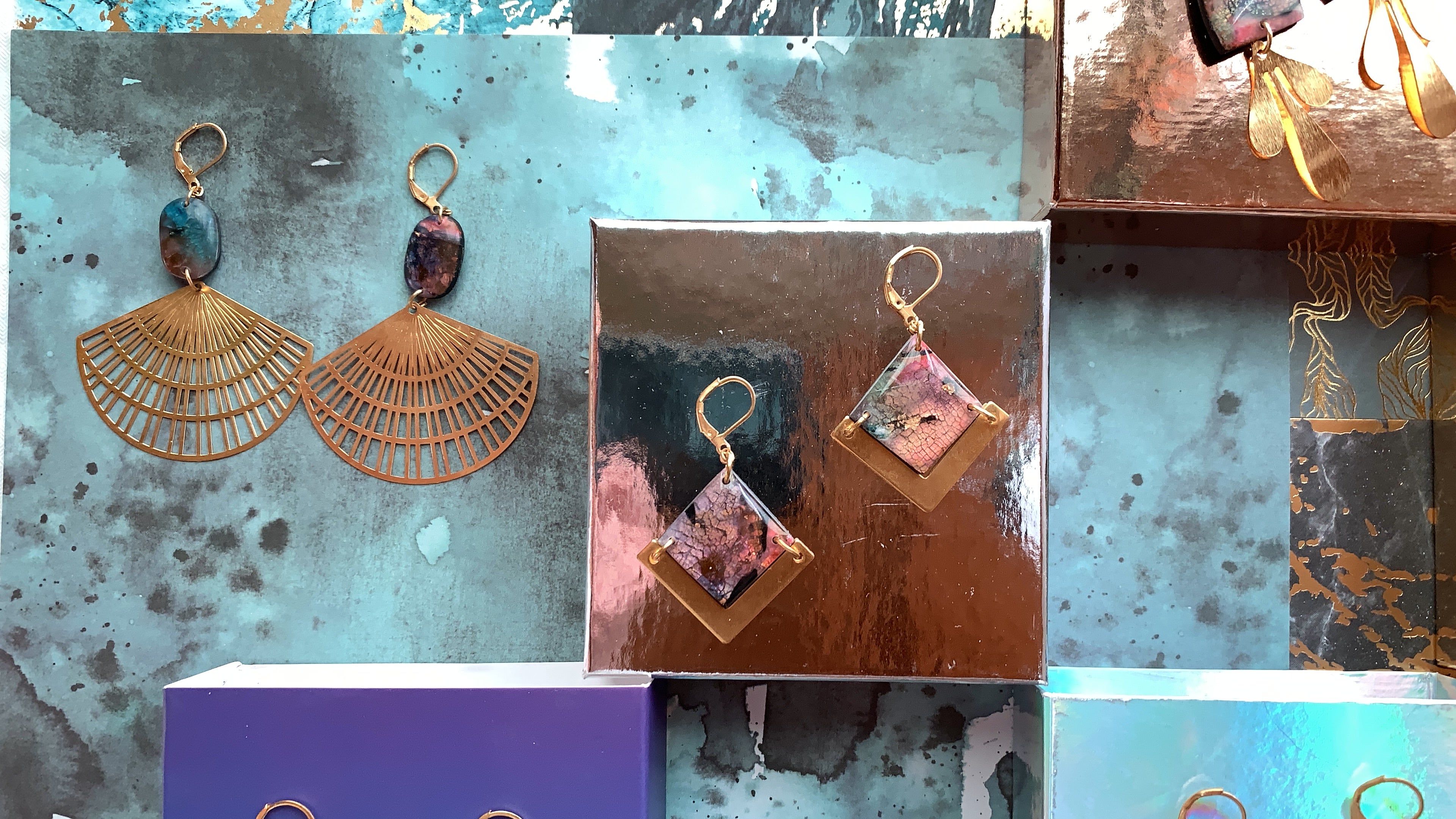 Une collection de bijoux uniques réalisés à la main en polymère et résine.