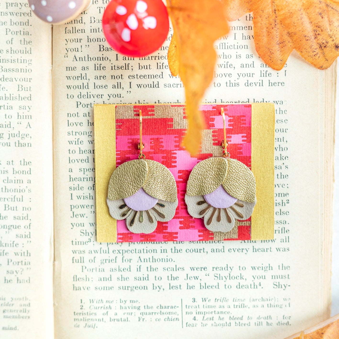 Boucles d'oreilles Fleur de Cerisier cuir or mat, rose pâle, beige