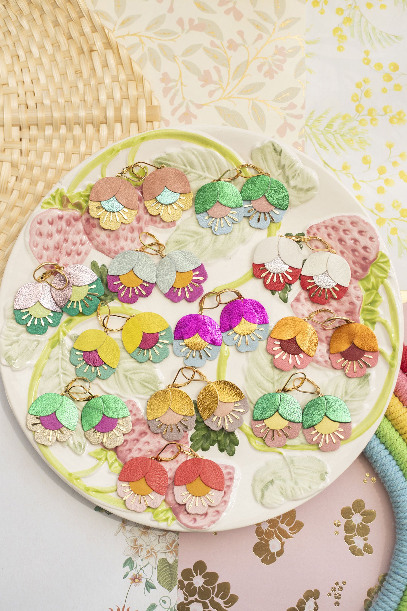 Tous les bijoux sont réalisés sur commande à la main dans mon atelier, en petites séries et les couleurs ou la découpe peuvent légèrement différer de la photo.